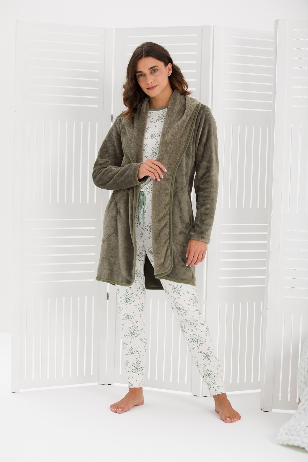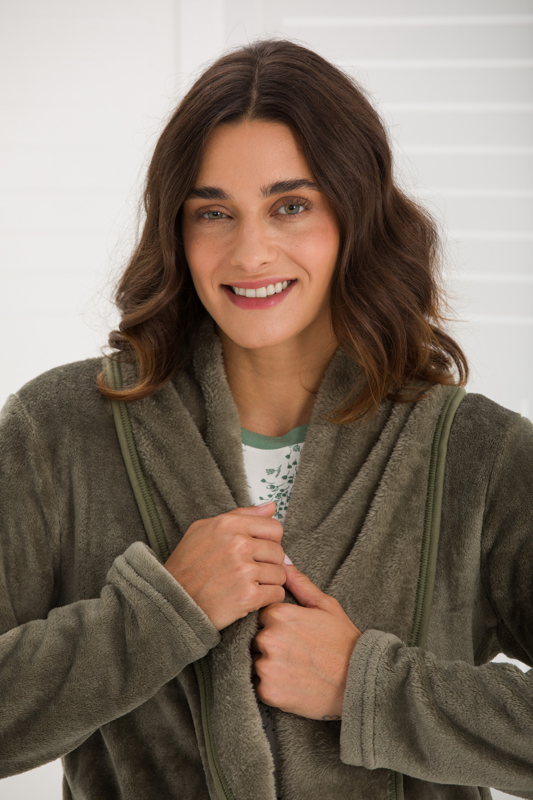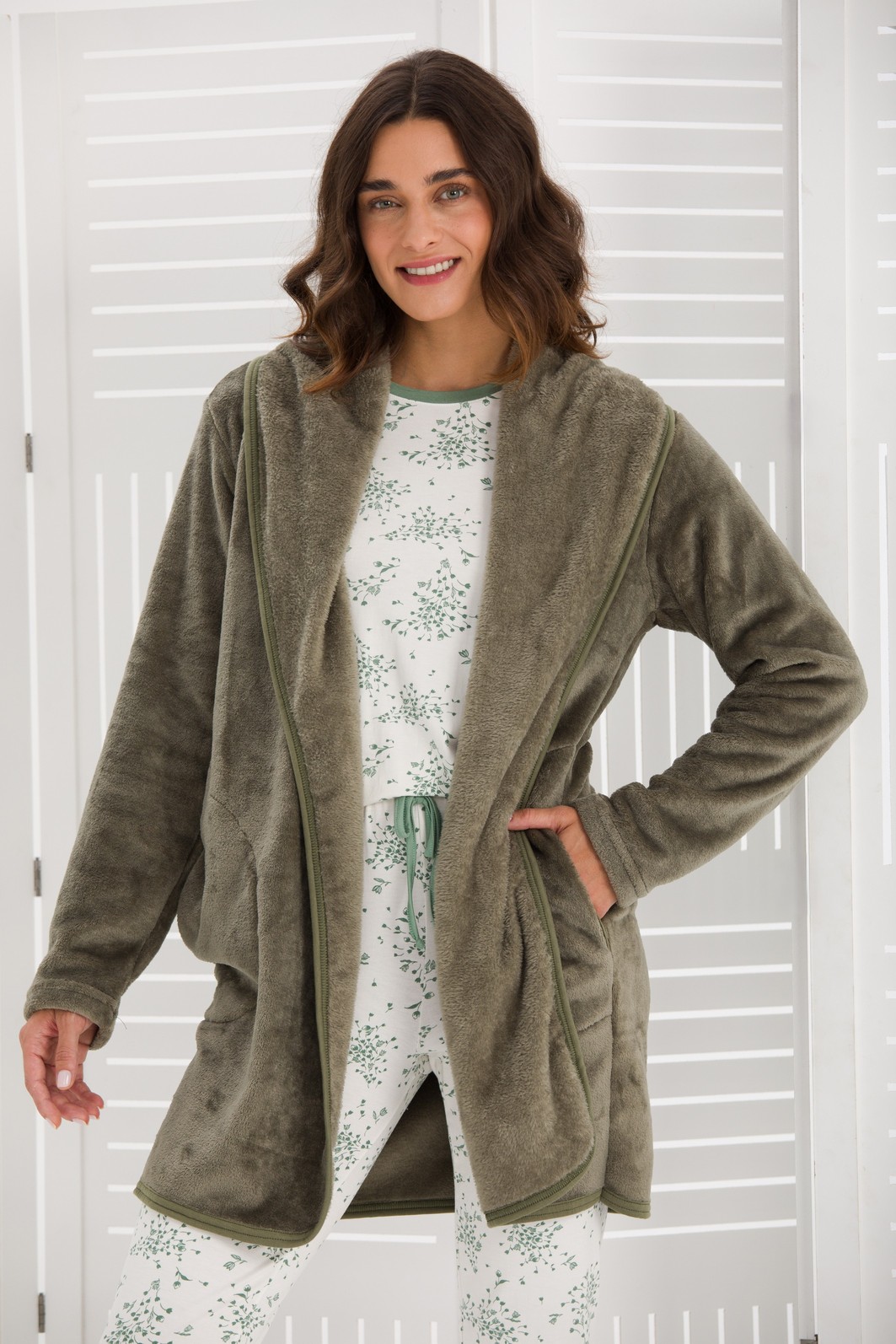 CASACO FEMININO LONGO FLEECE VERDE
