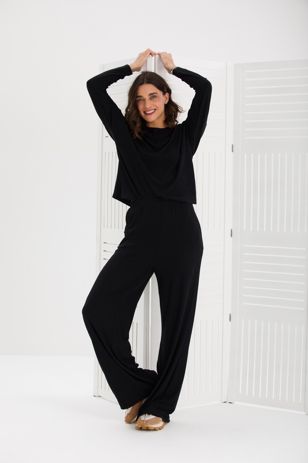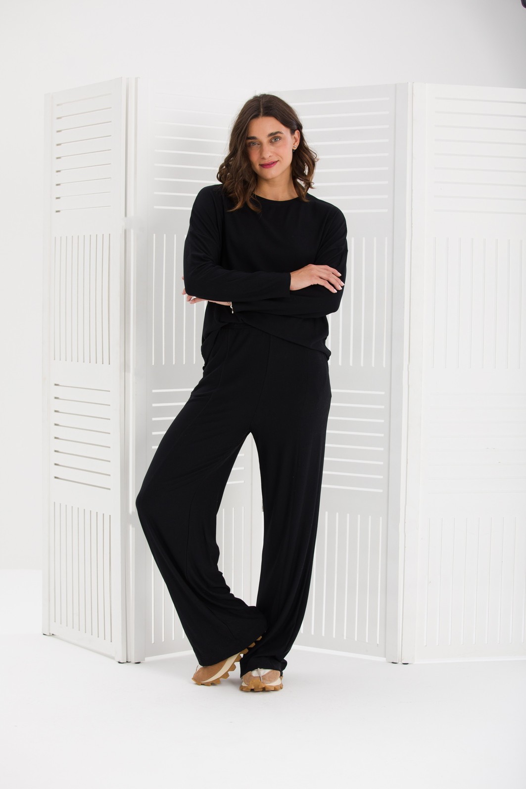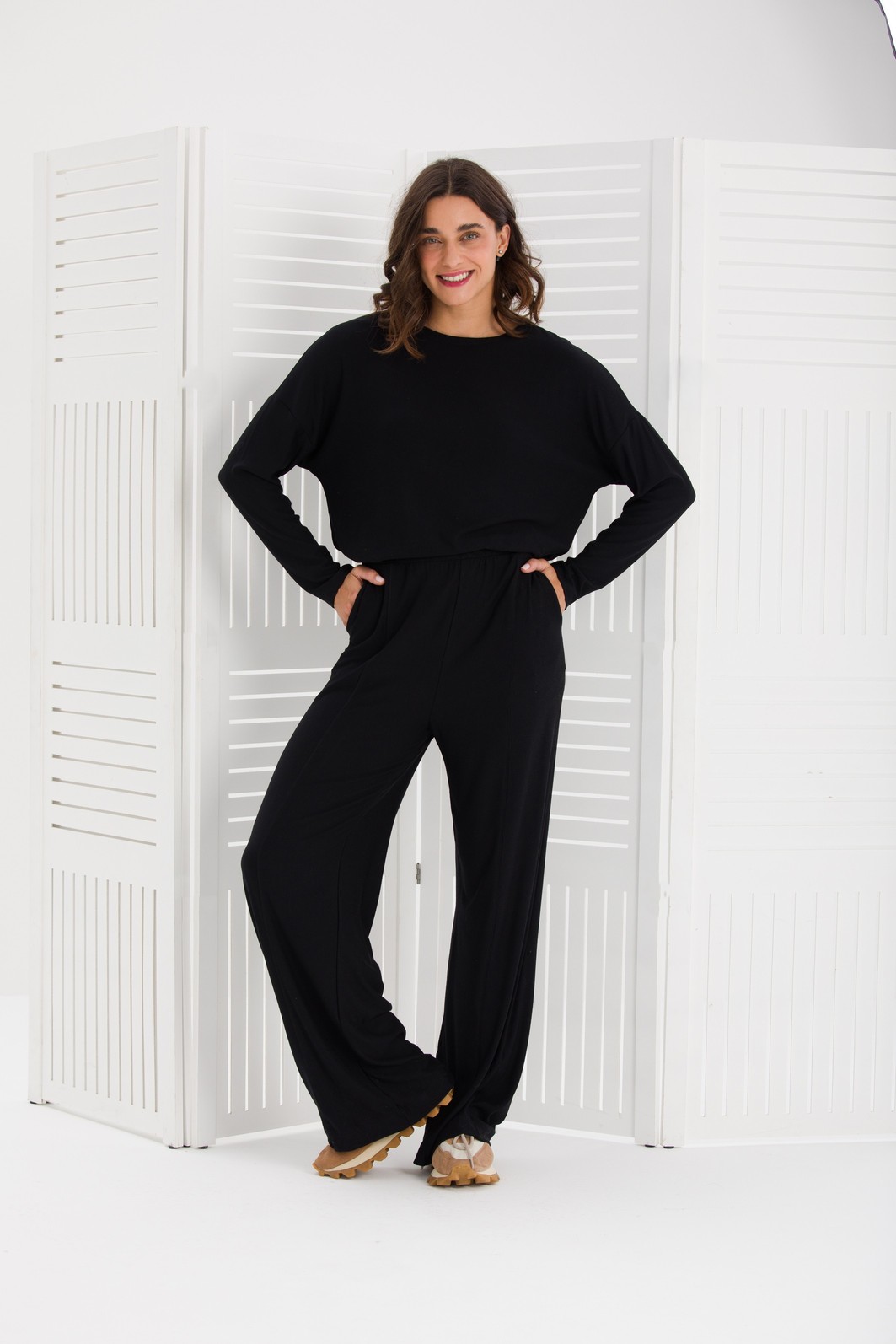 CONJUNTO BASIC MANGA LONGA MOLETOM DE VISCOSE PRETO