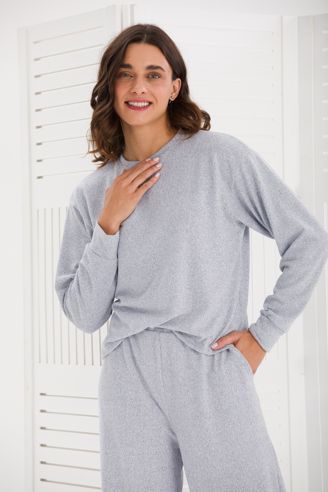 Início FEMININO CONJUNTO FEMININO MALHA TRICOT BLUSA AMPLA E CALÇA WIDE AZUL MESCLADO