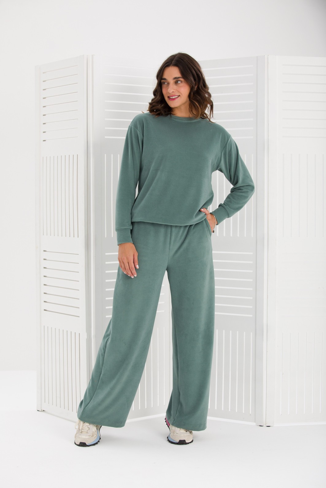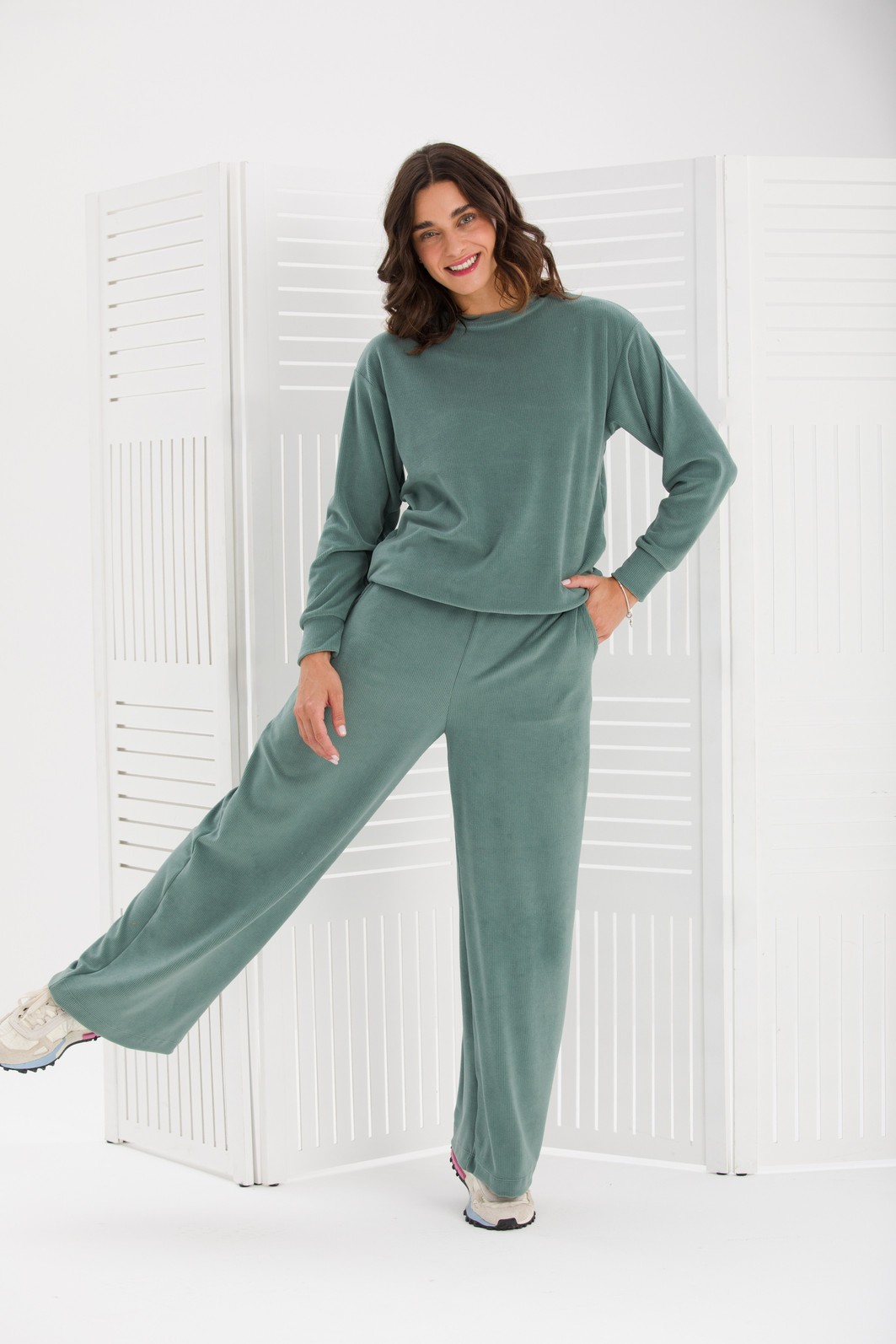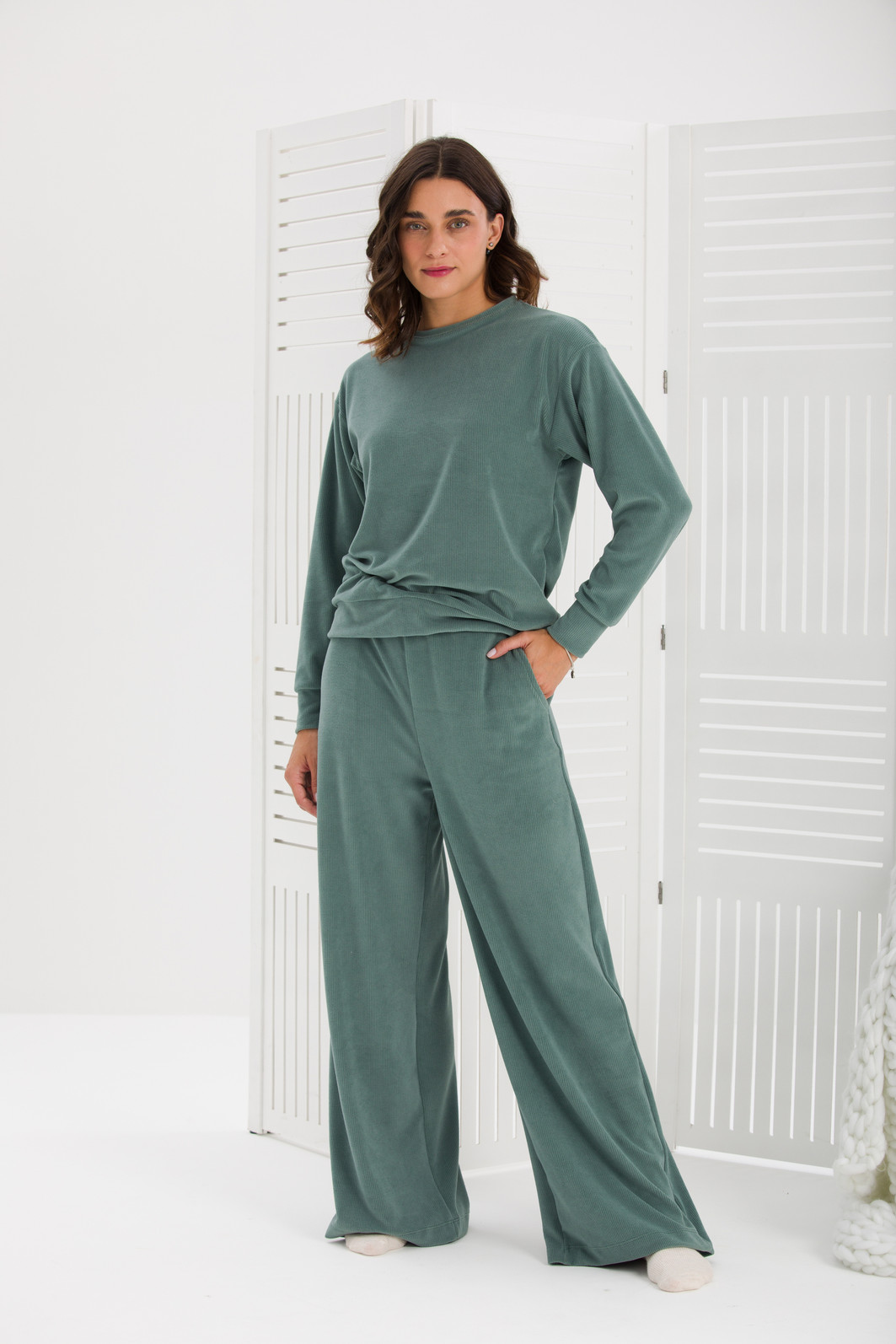 CONJUNTO MANGA LONGA MALHA CANELADA VELUDO VERDE