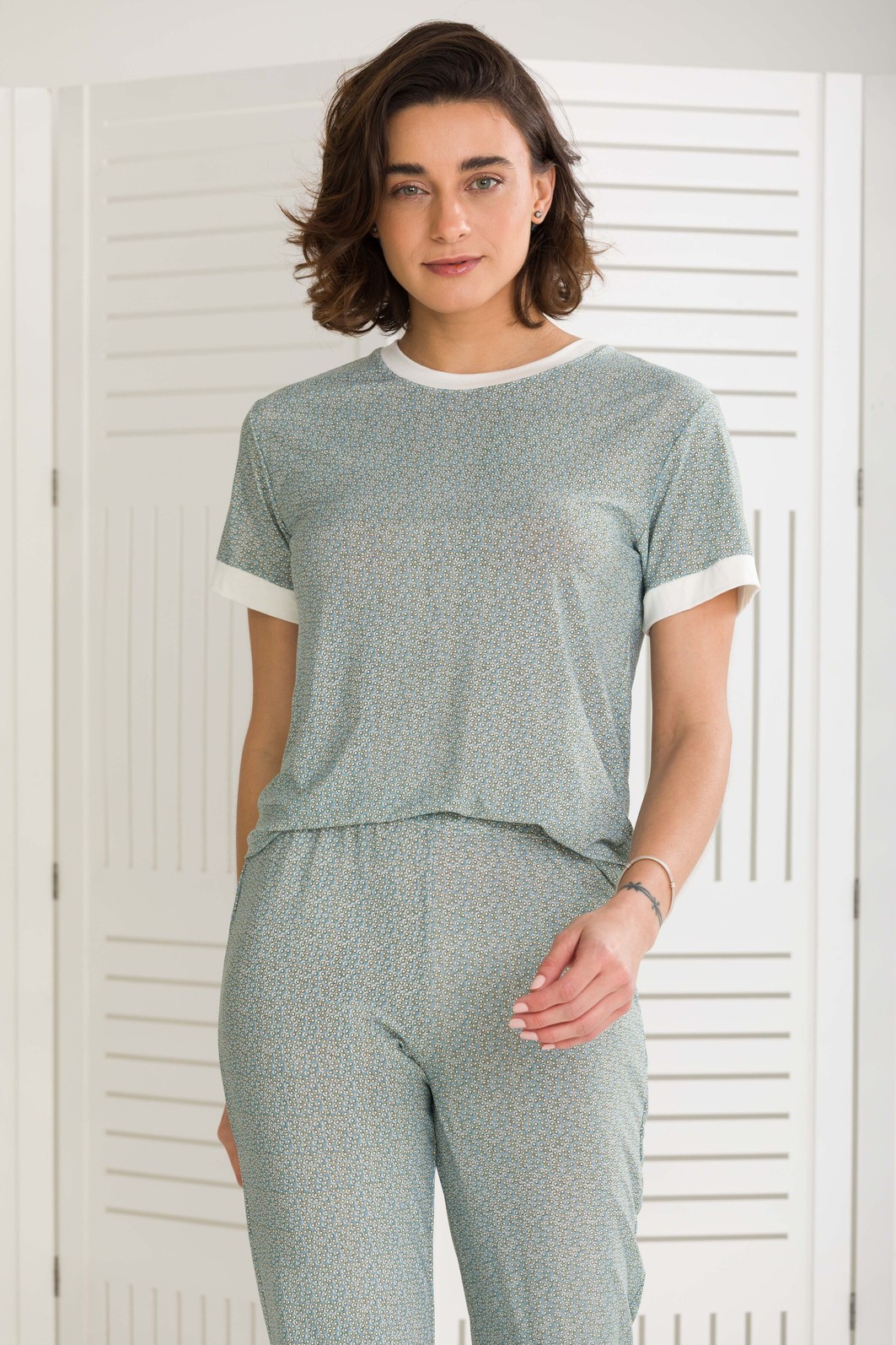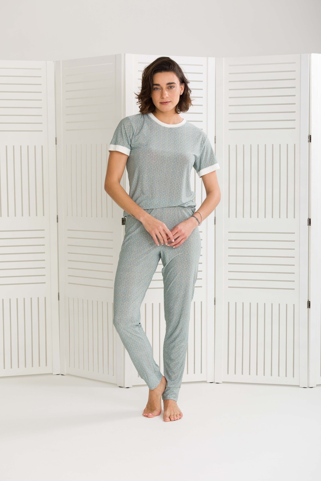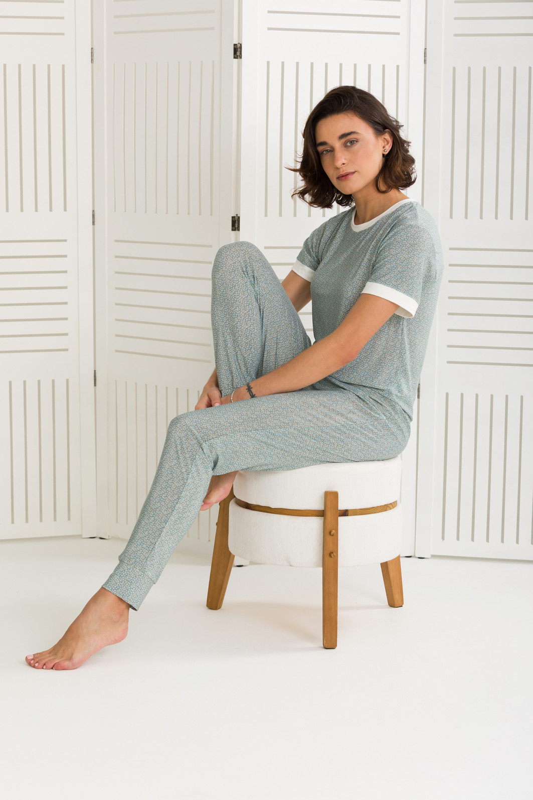 PIJAMA FEMININO MANGA CURTA COM CALÇA LIGANETE MINI POÁ