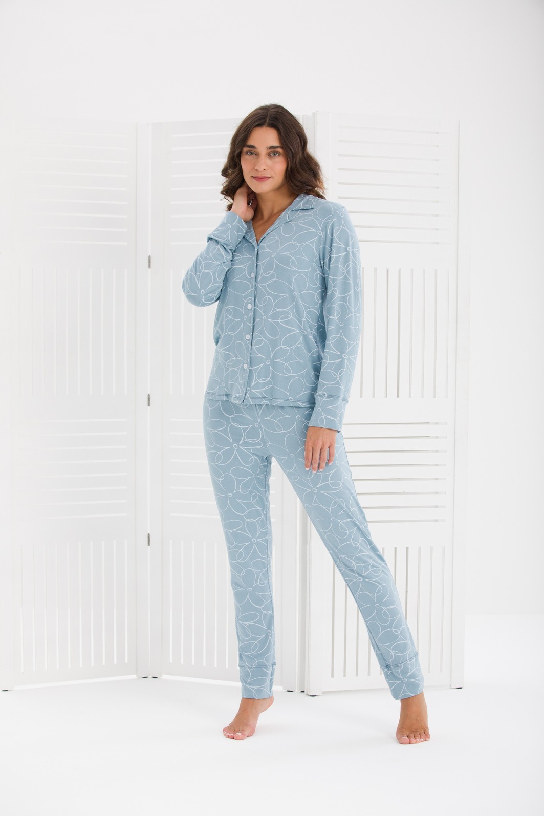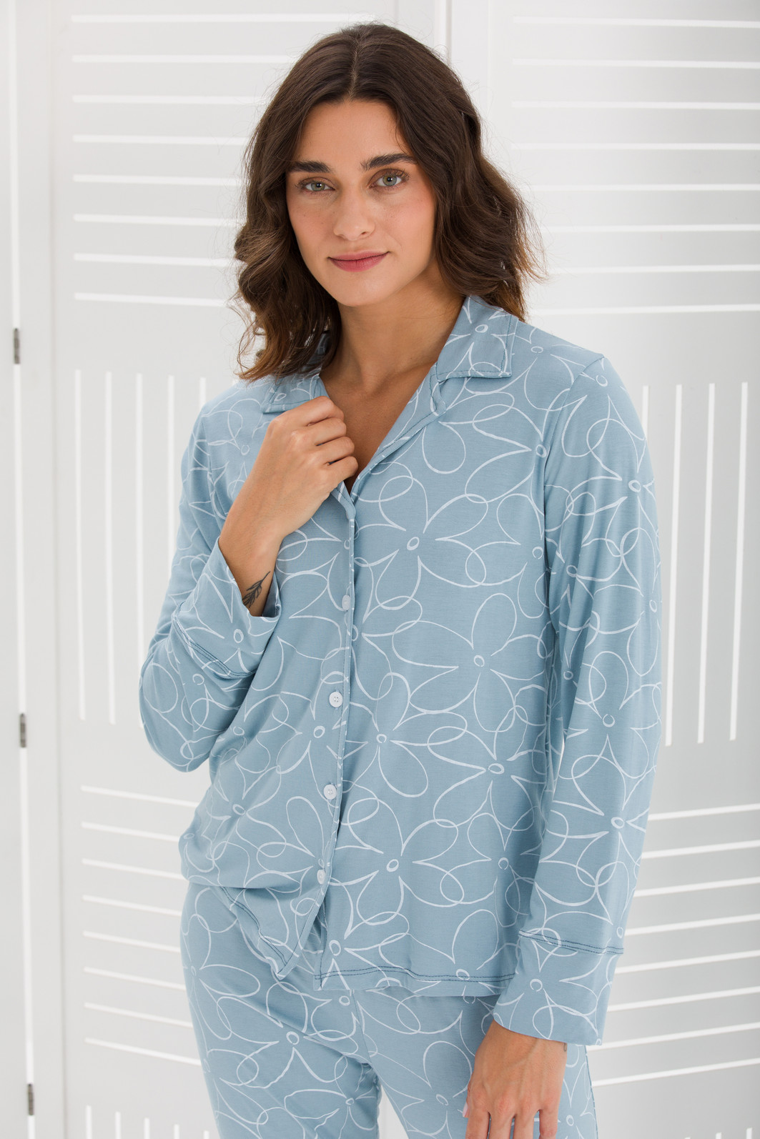 PIJAMA FEMININO MANGA LONGA AMERICANO FLOWERS AZUL