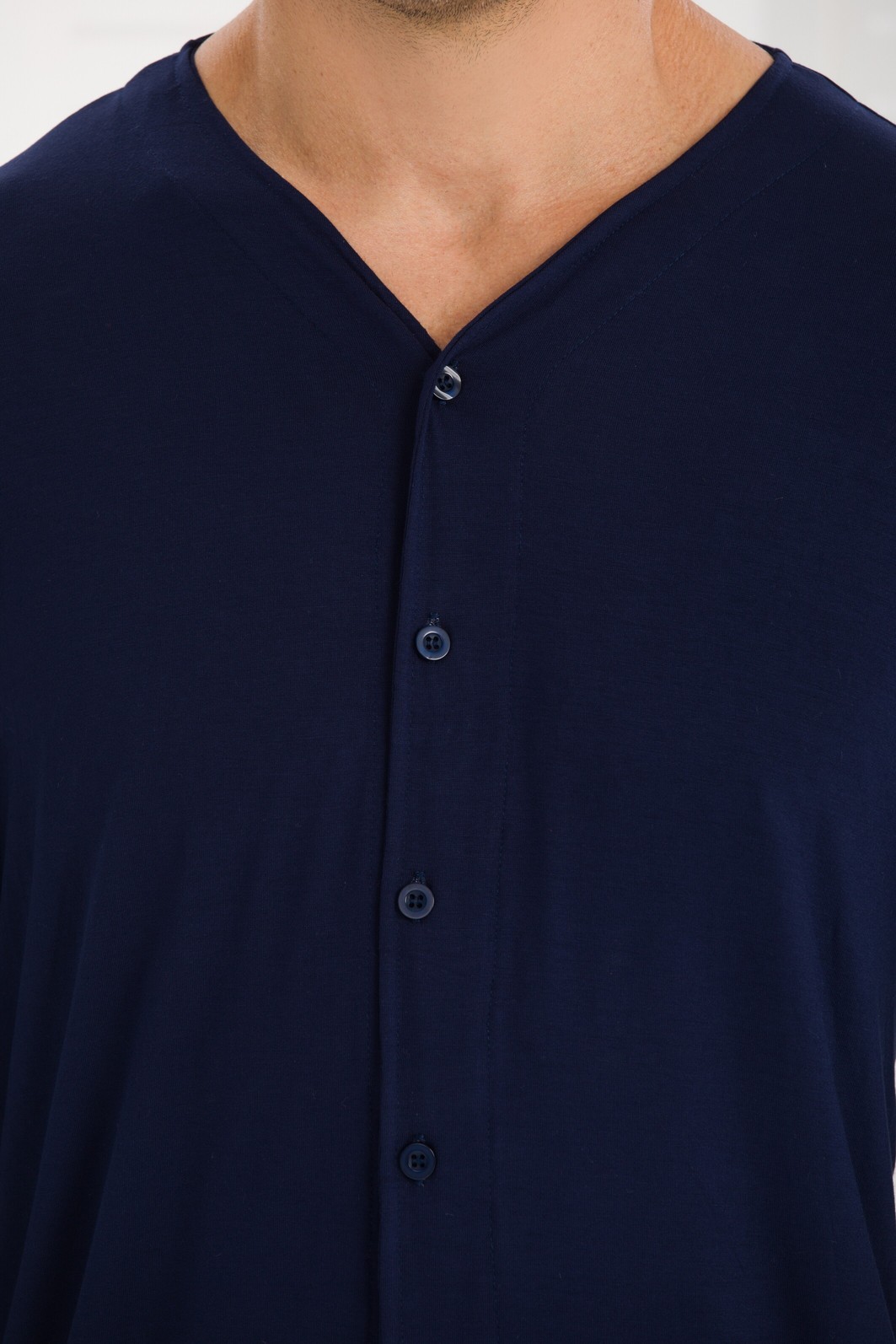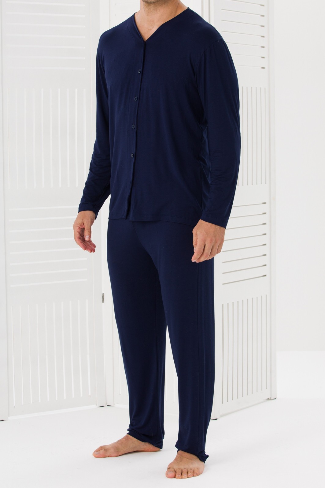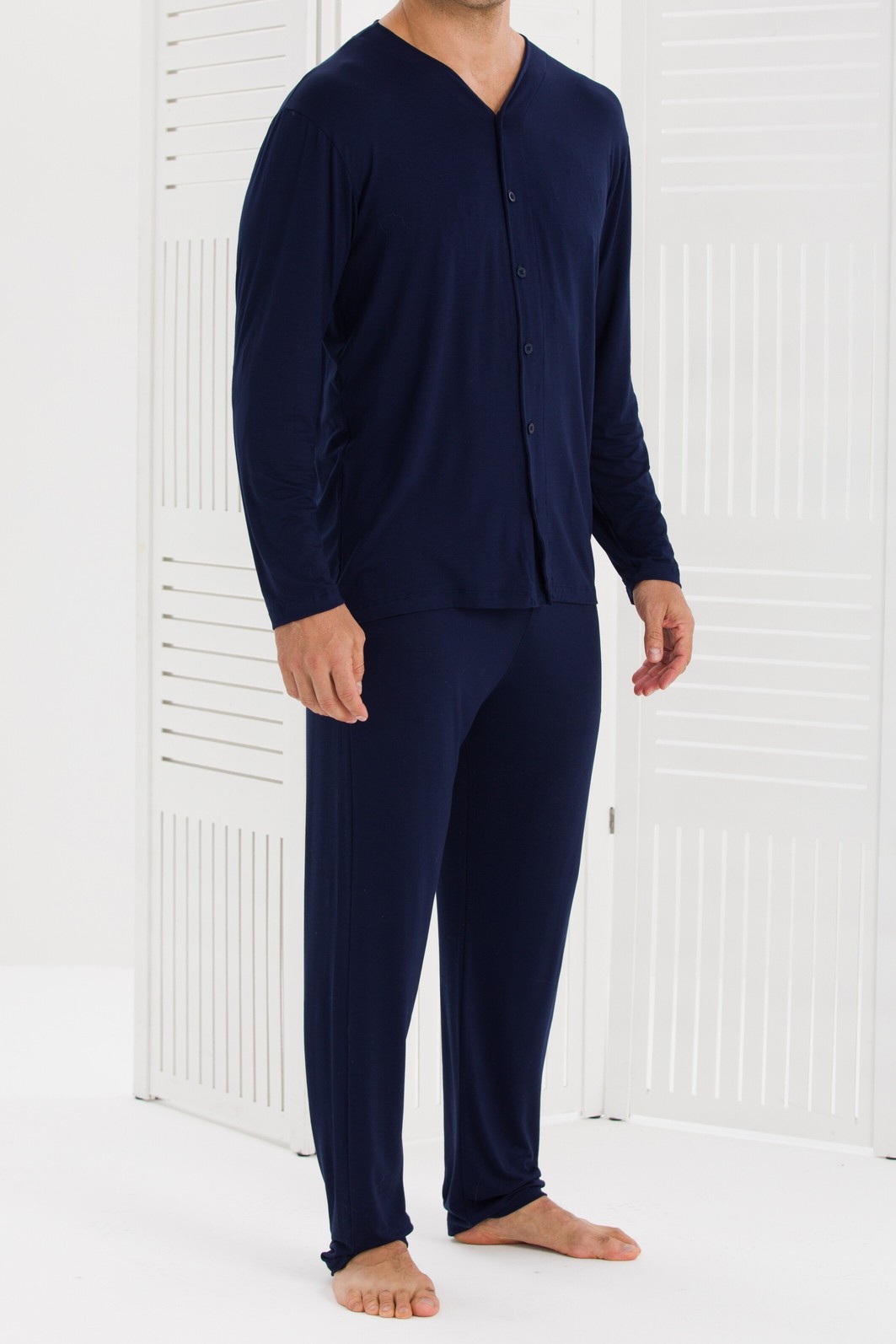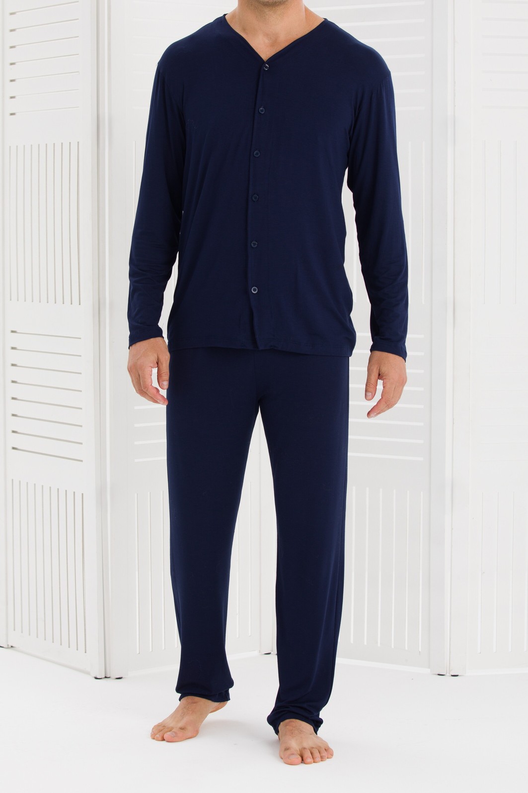PIJAMA MASCULINO MANGA LONGA ABERTURA FRONTAL SEM GOLA MARINHO