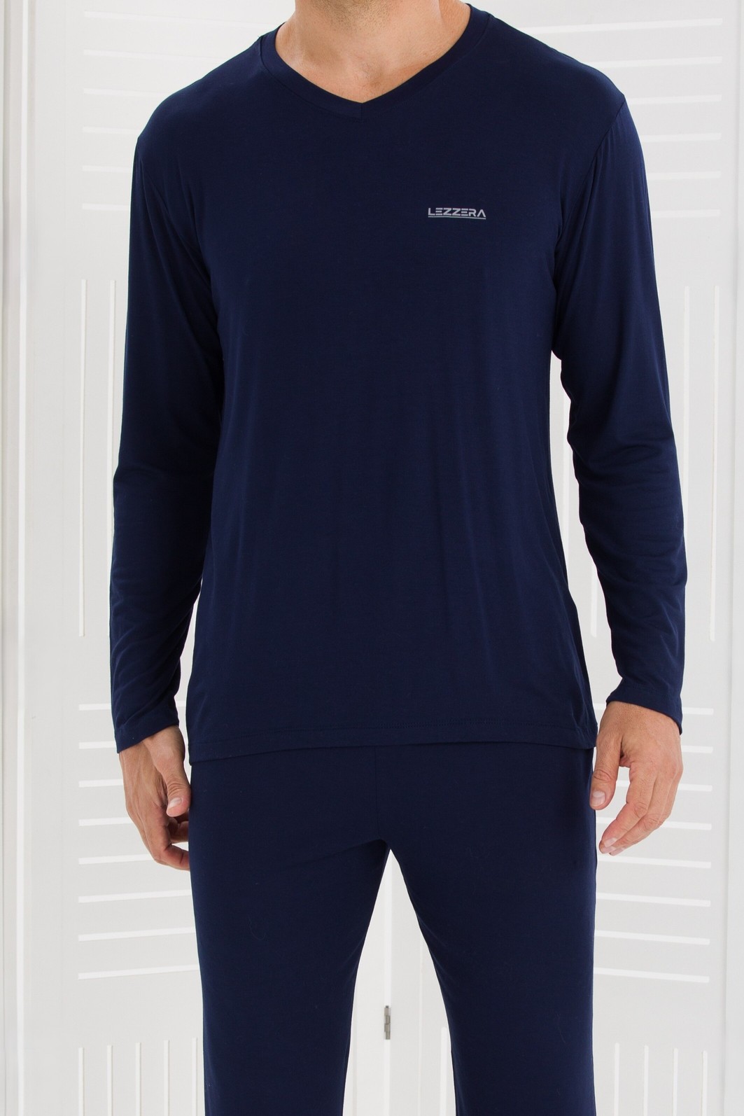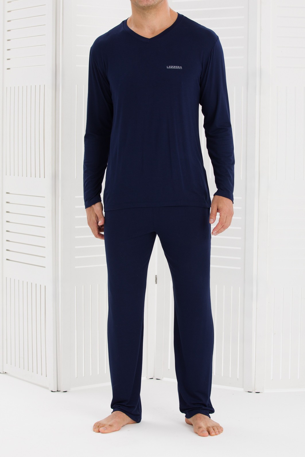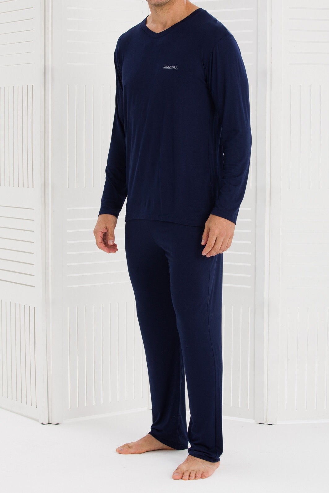 PIJAMA MASCULINO MANGA LONGA DECOTE V MARINHO